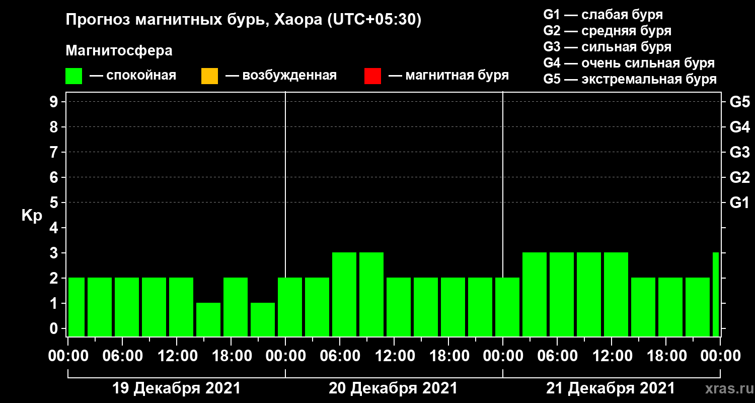 Прогноз магнитных бурь в Хаоре — 19 декабря 2021 года
