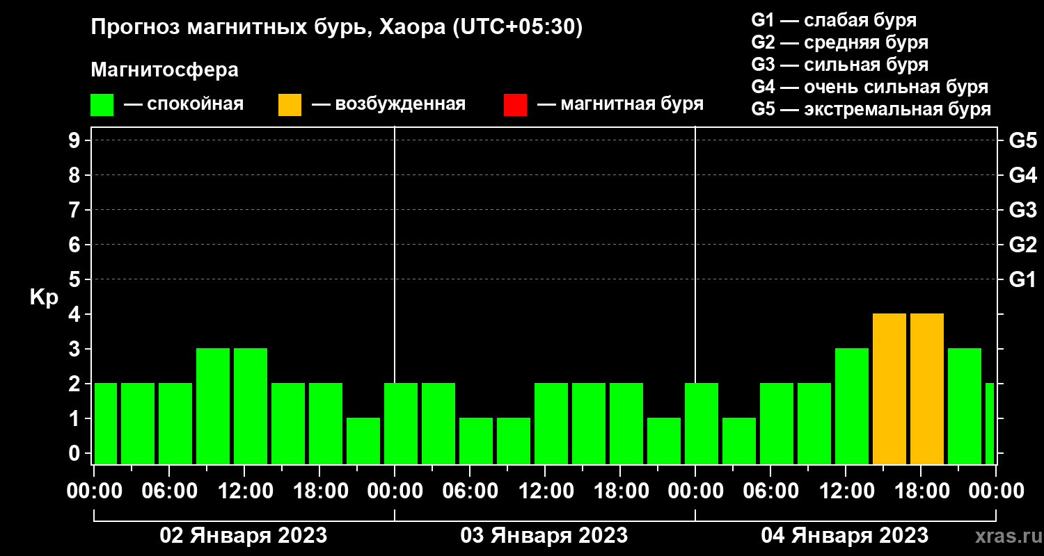 Прогноз магнитных бурь в Хаоре — 2 января 2023 года