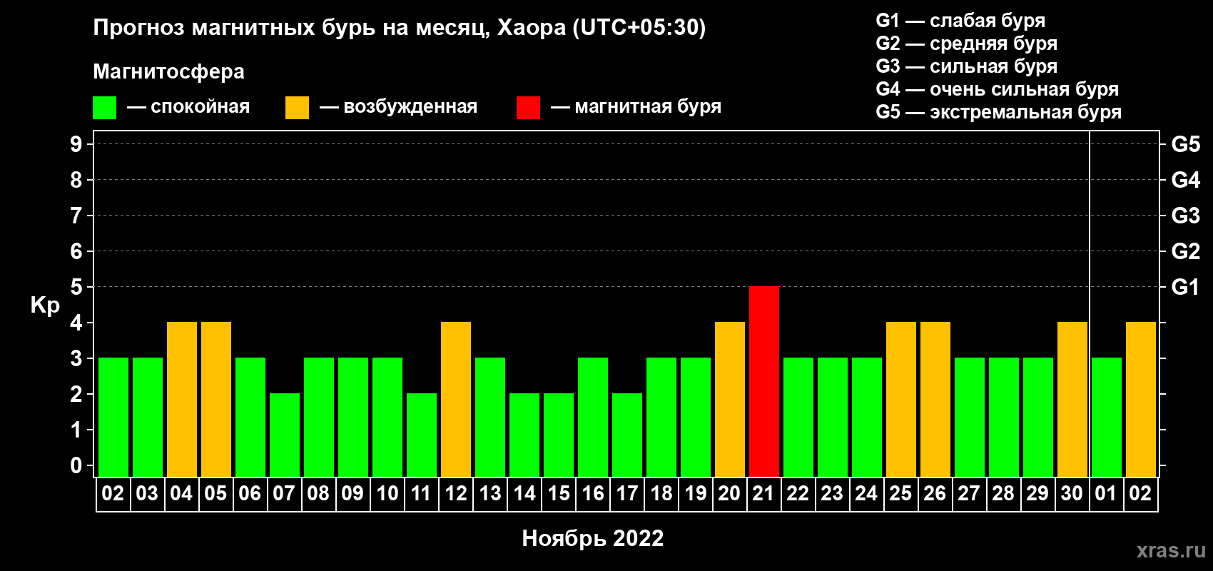 Прогноз магнитных бурь в Хаоре — 2 ноября 2022 года