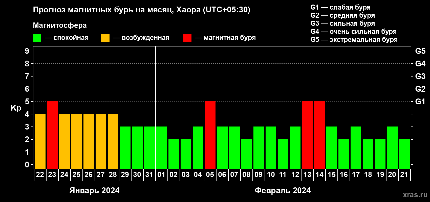 Прогноз магнитных бурь в Хаоре — 22 января 2024 года