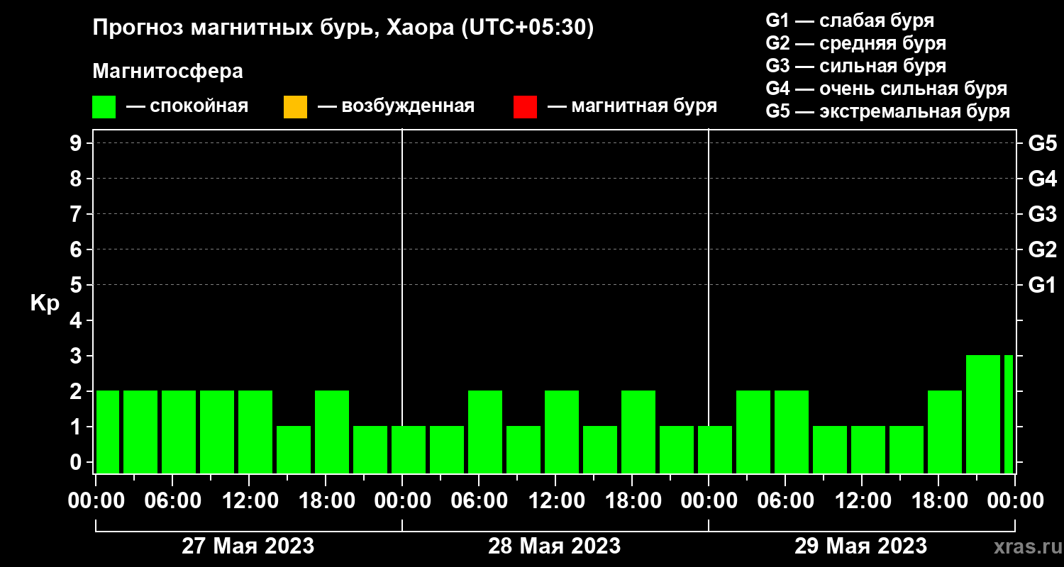 Прогноз магнитных бурь в Хаоре на 27 мая 2023 года