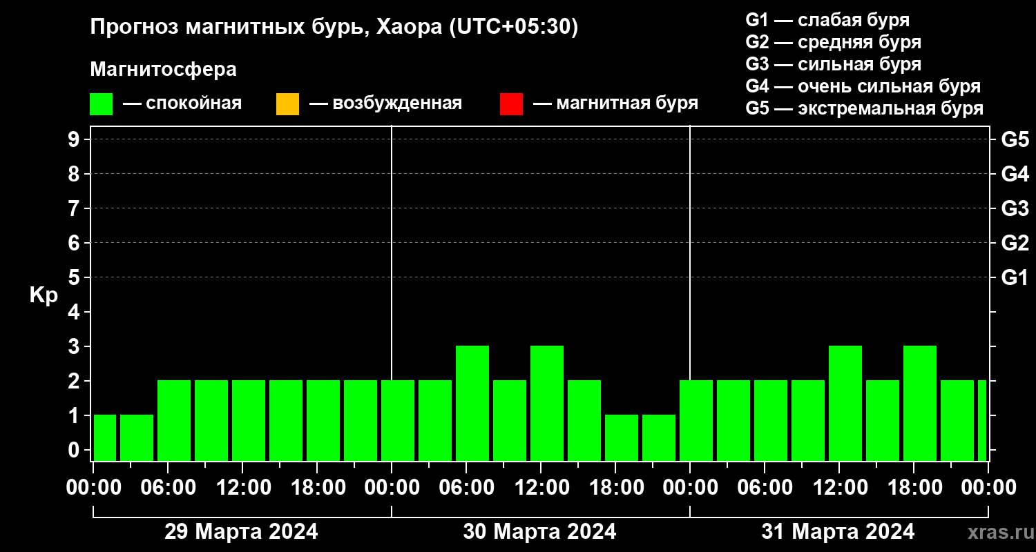 Прогноз магнитных бурь в Хаоре на 29 марта 2024 года