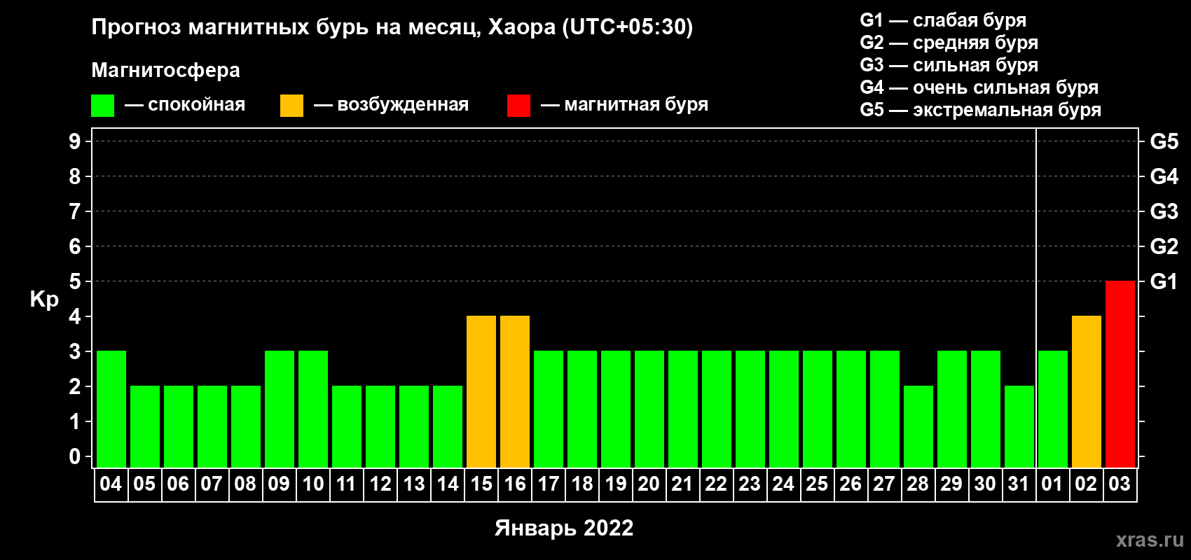 Прогноз магнитных бурь в Хаоре — 4 января 2022 года