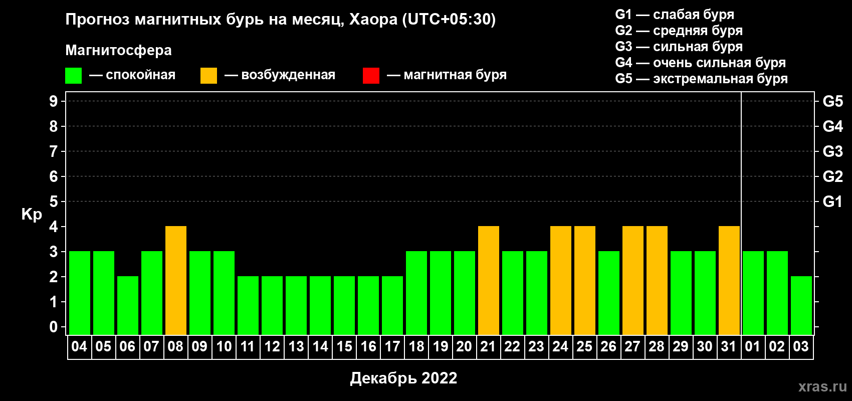 Прогноз магнитных бурь в Хаоре на 4 декабря 2022 года