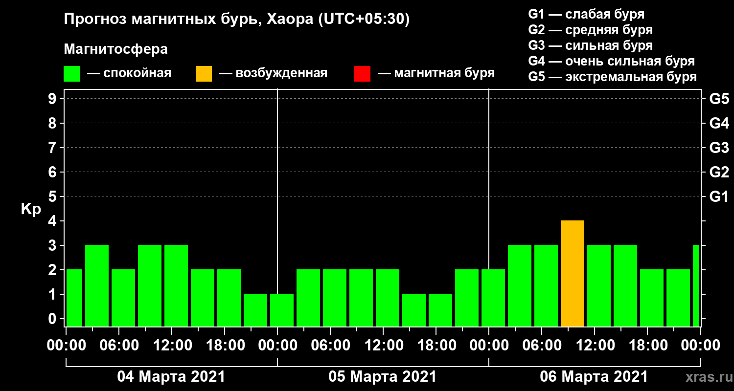 Прогноз магнитных бурь в Хаоре — 4 марта 2021 года