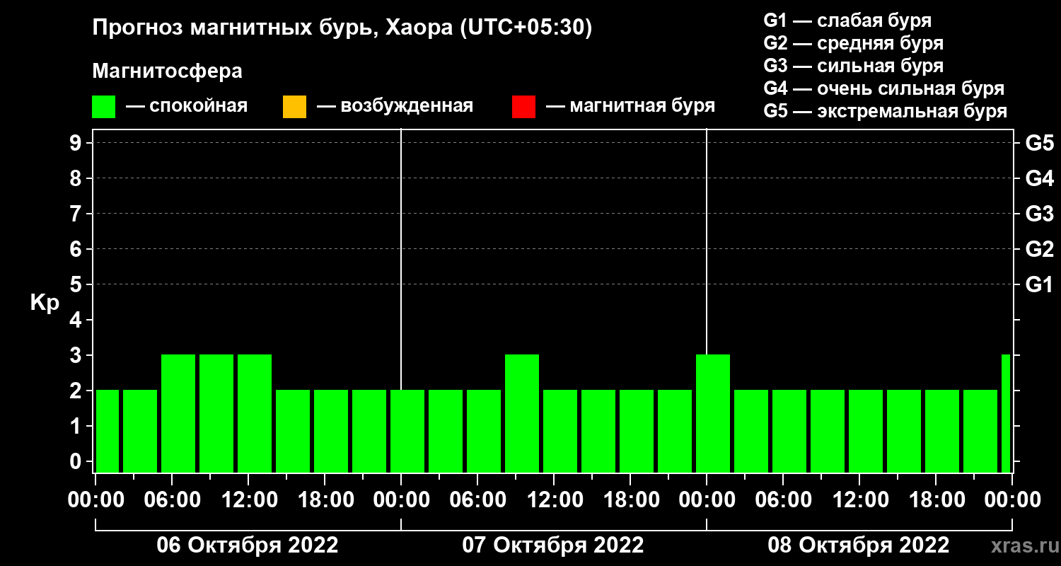 Прогноз магнитных бурь в Хаоре — 6 октября 2022 года