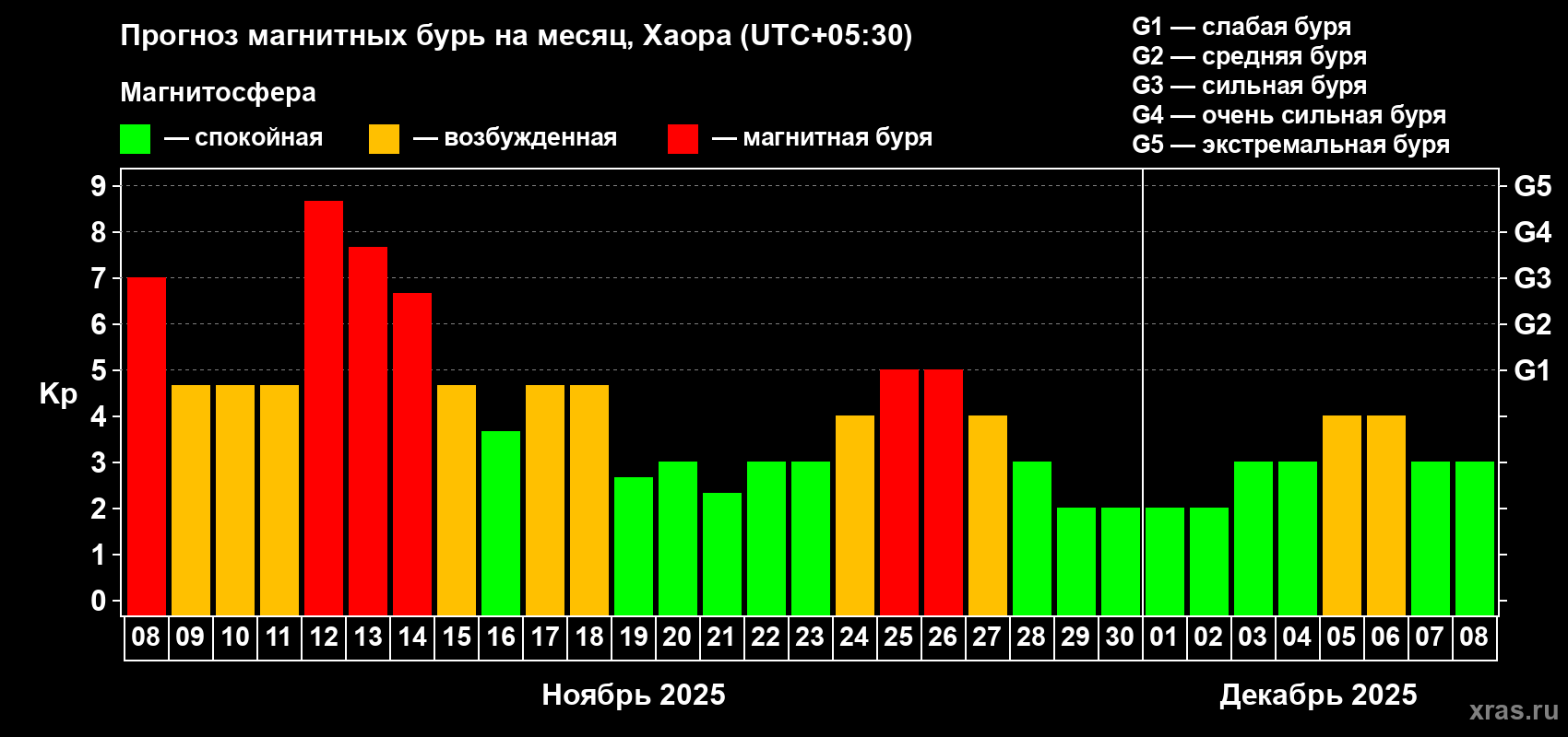 Прогноз магнитных бурь в Хаоре — 8 ноября 2025 года