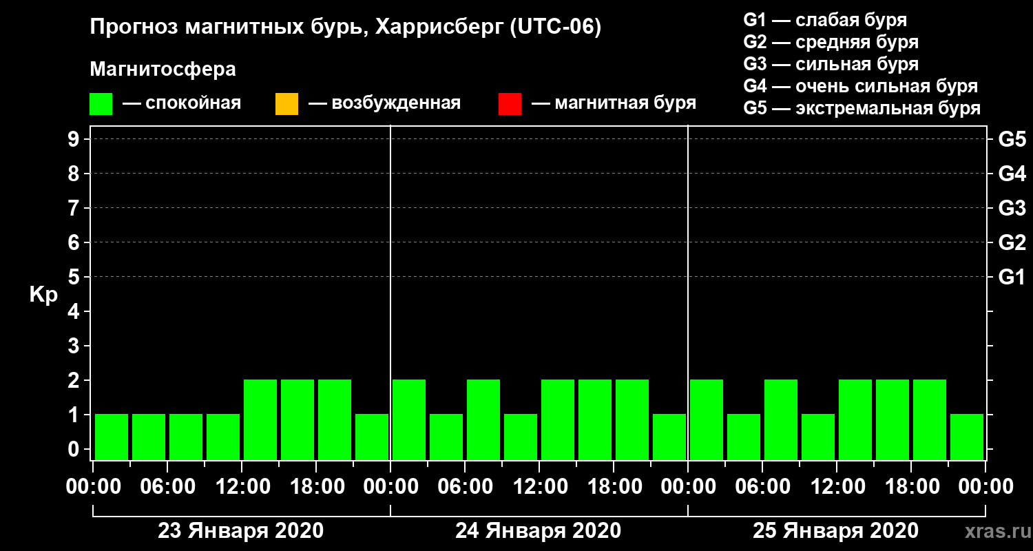 Прогноз магнитных бурь в Харрисберге — 23 января 2020 года