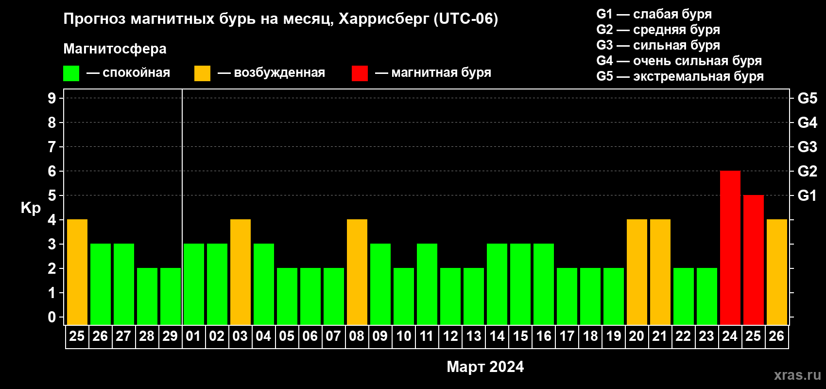 Прогноз магнитных бурь в Харрисберге — 25 февраля 2024 года