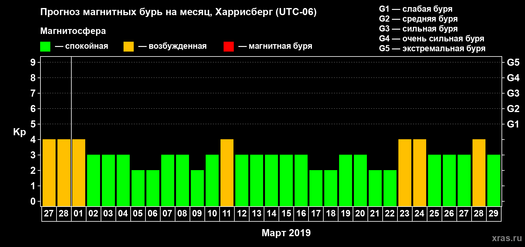 Прогноз магнитных бурь в Харрисберге — 27 февраля 2019 года