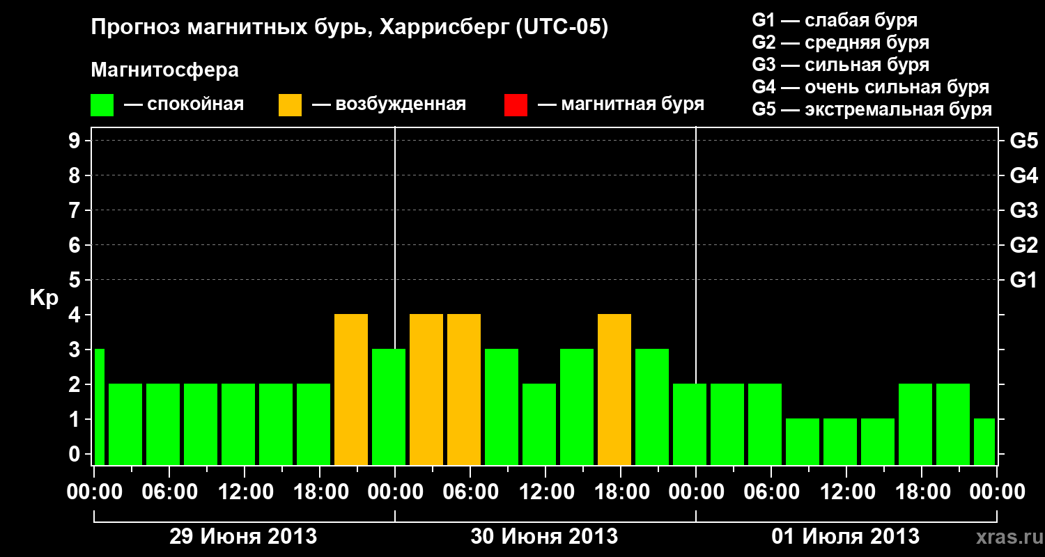 Прогноз магнитных бурь в Харрисберге — 29 июня 2013 года