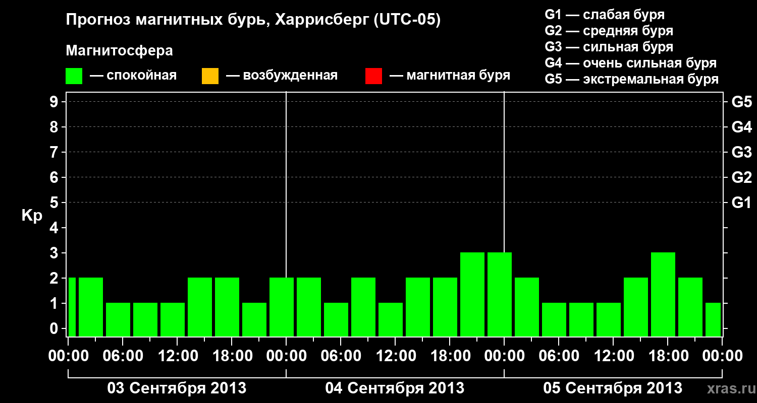 Прогноз магнитных бурь в Харрисберге — 3 сентября 2013 года