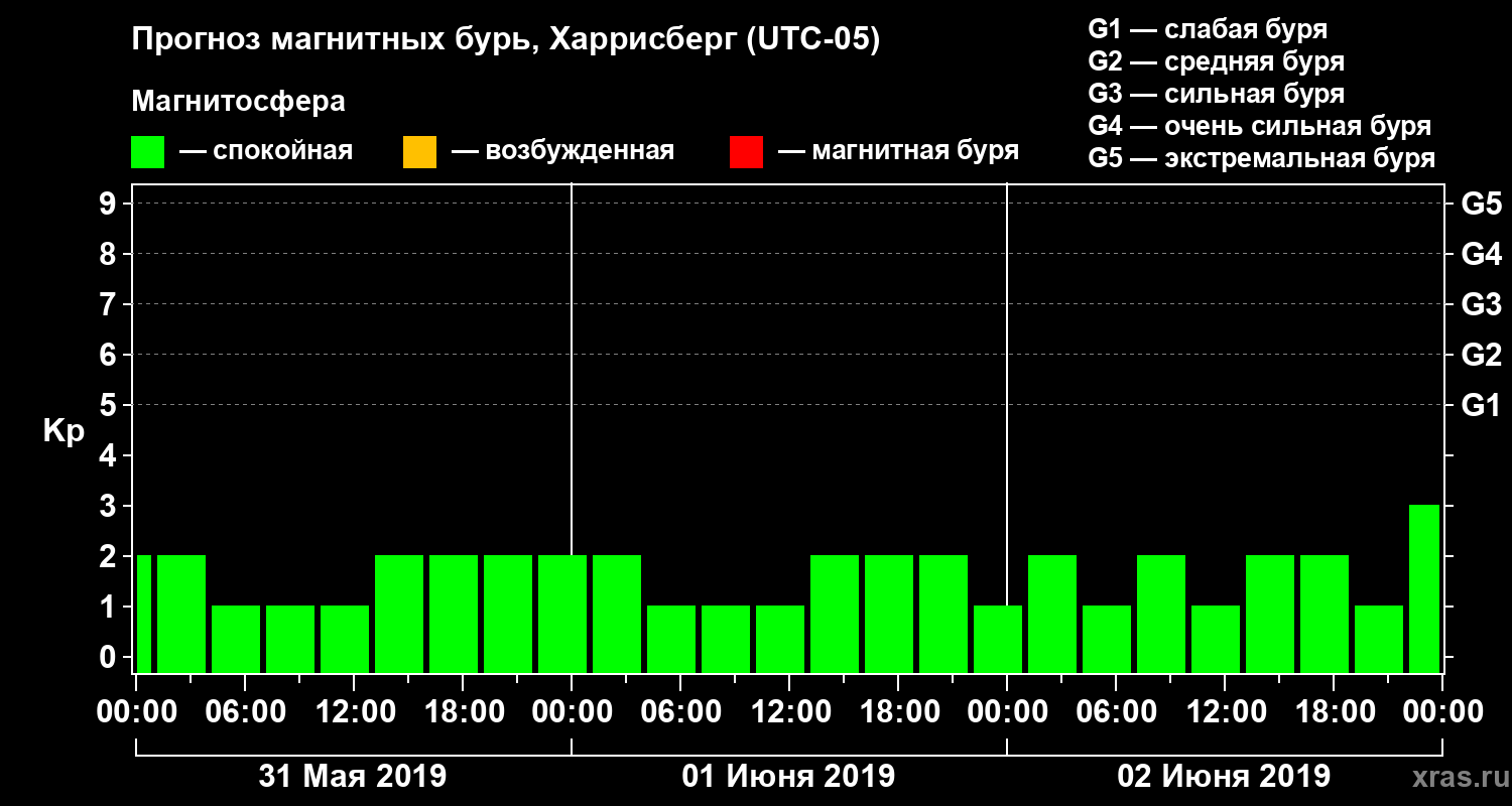 Прогноз магнитных бурь в Харрисберге — 31 мая 2019 года