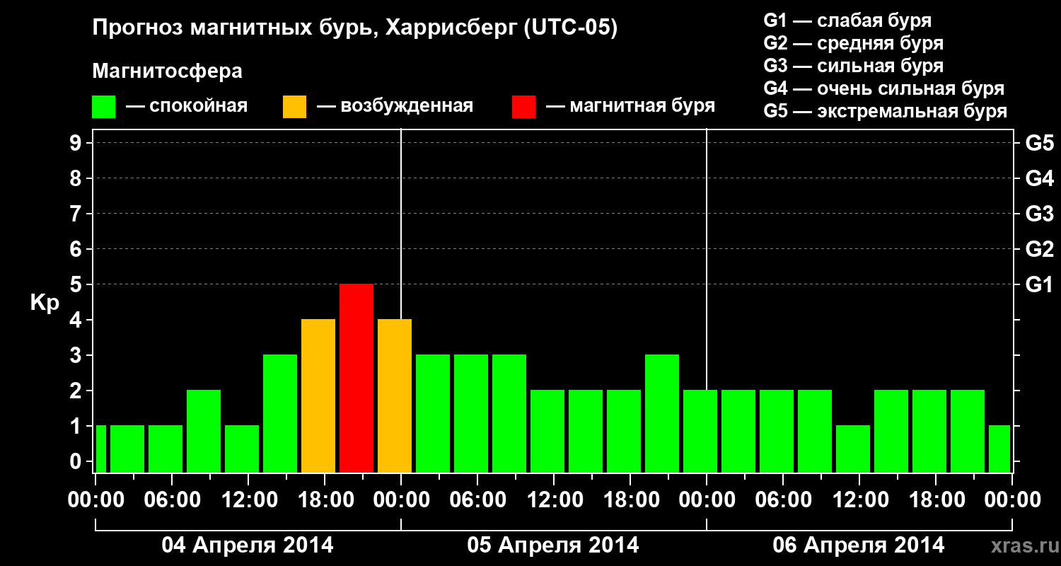Прогноз магнитных бурь в Харрисберге на 4 апреля 2014 года