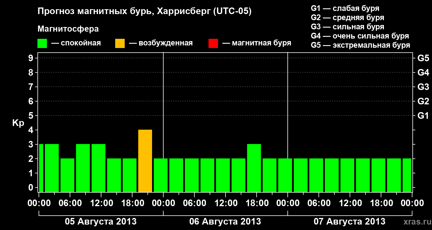 Прогноз магнитных бурь в Харрисберге на 5 августа 2013 года