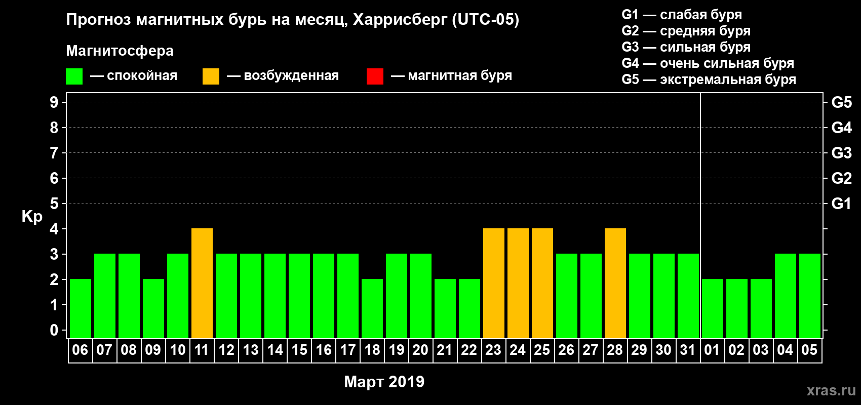 Прогноз магнитных бурь в Харрисберге — 6 марта 2019 года