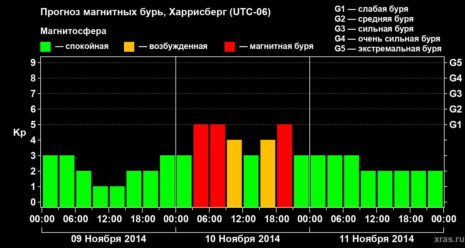 Прогноз магнитных бурь в Харрисберге — 9 ноября 2014 года