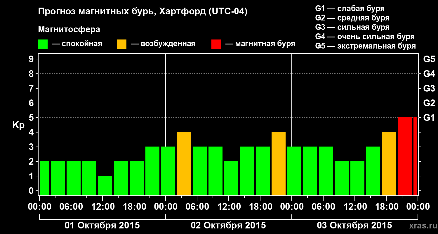 Прогноз магнитных бурь в Хартфорде — 1 октября 2015 года