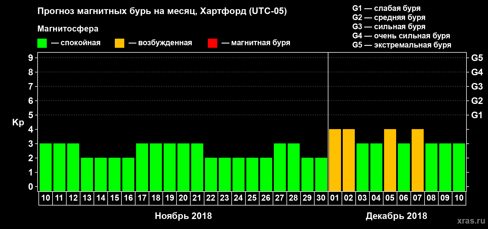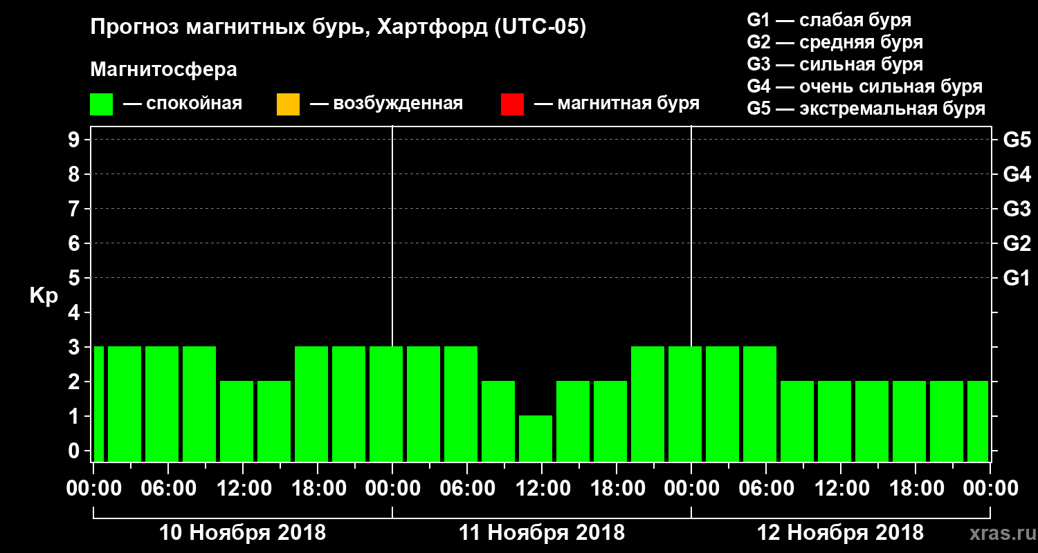 Прогноз магнитных бурь в Хартфорде — 10 ноября 2018 года