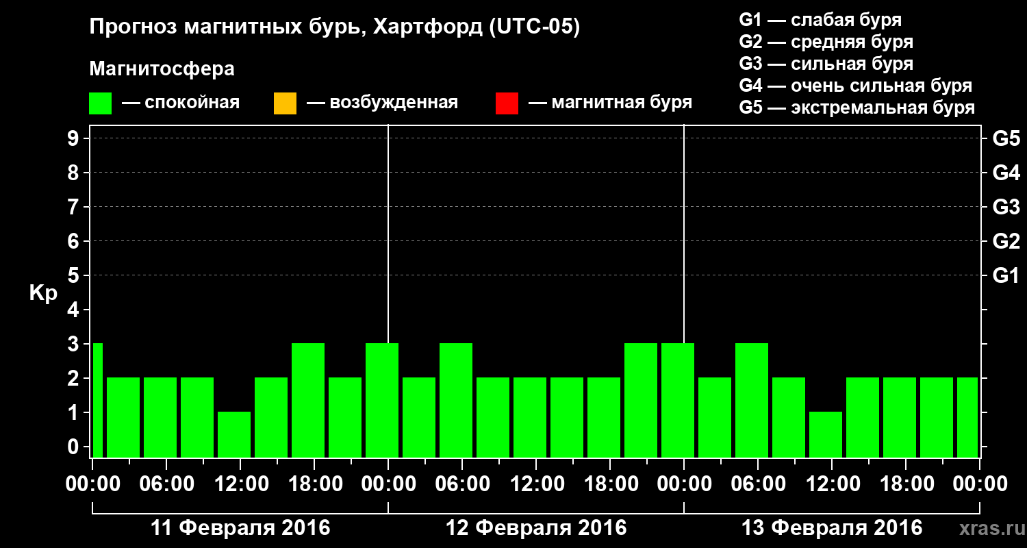 Прогноз магнитных бурь в Хартфорде на 11 февраля 2016 года