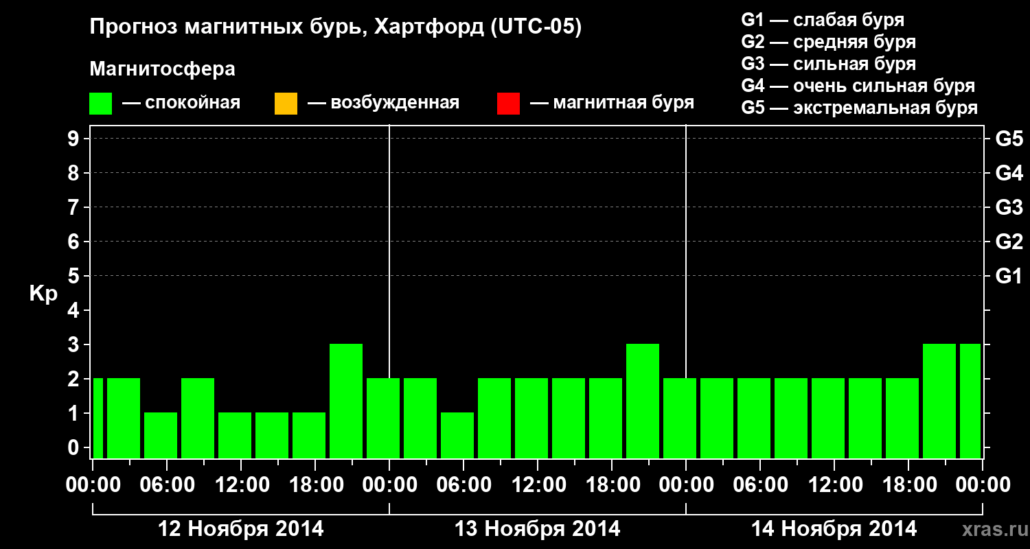 Прогноз магнитных бурь в Хартфорде — 12 ноября 2014 года