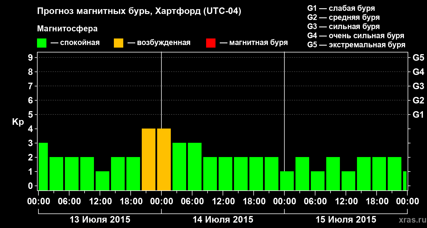 Прогноз магнитных бурь в Хартфорде на 13 июля 2015 года