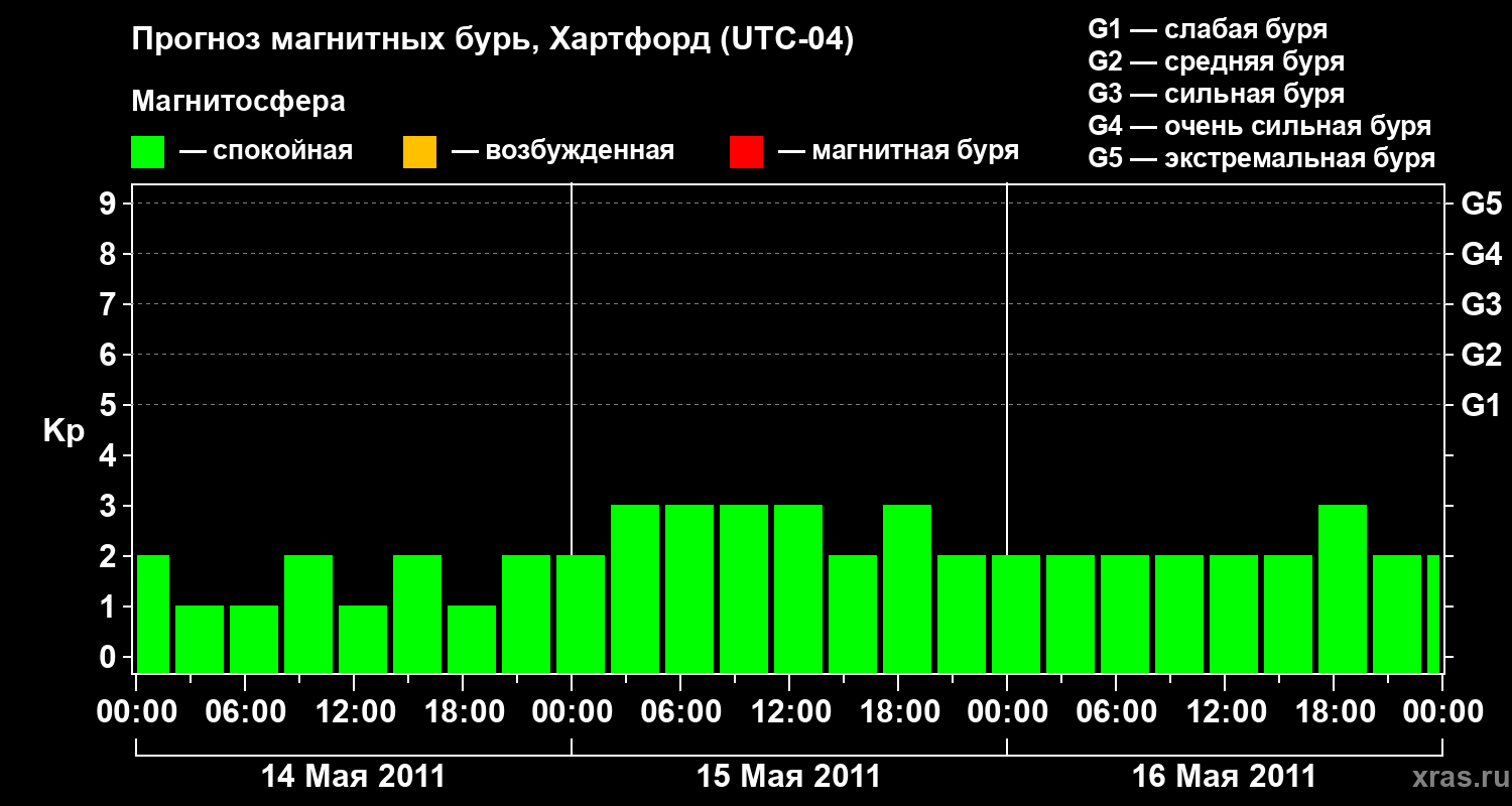 Прогноз магнитных бурь в Хартфорде на 14 мая 2011 года