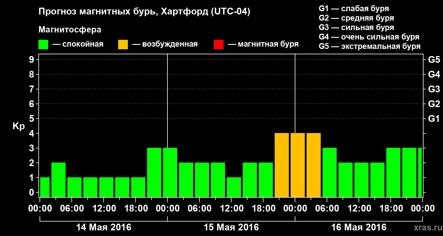 Прогноз магнитных бурь в Хартфорде на 14 мая 2016 года