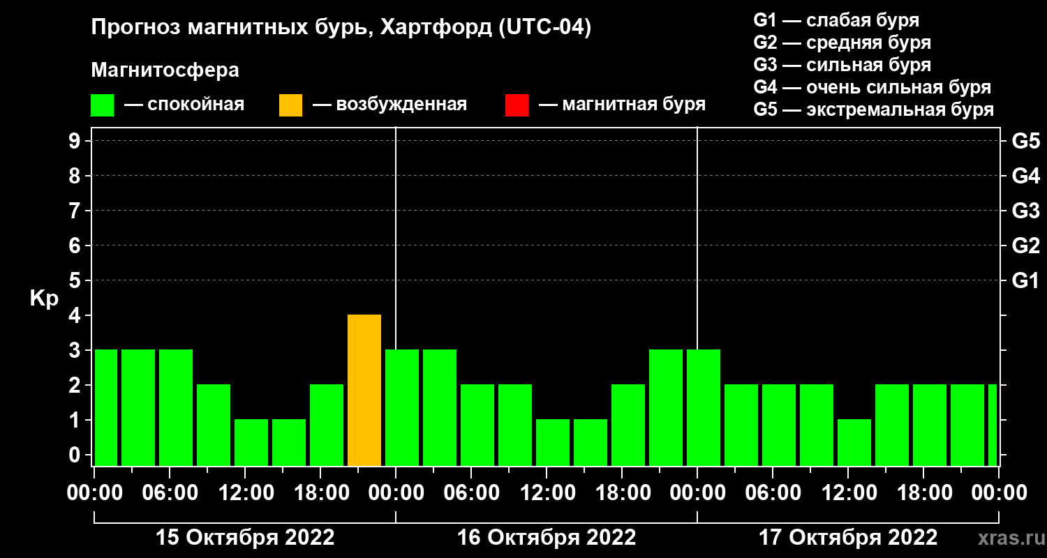 Прогноз магнитных бурь в Хартфорде на 15 октября 2022 года