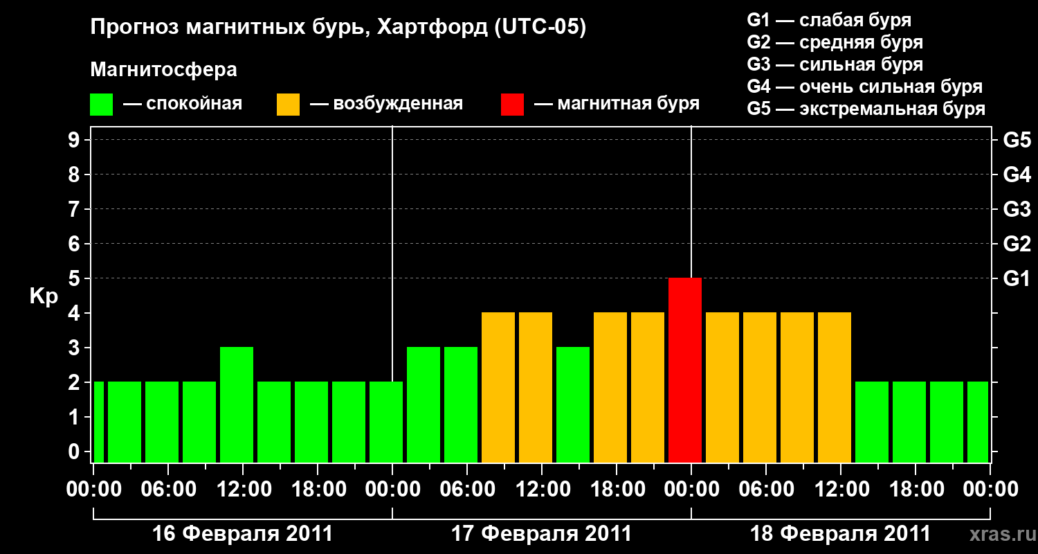 Прогноз магнитных бурь в Хартфорде на 16 февраля 2011 года