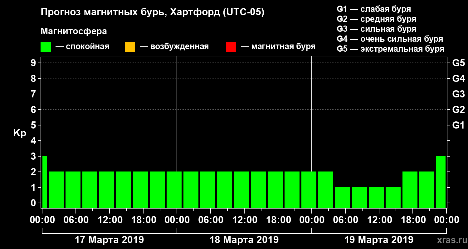 Прогноз магнитных бурь в Хартфорде на 17 марта 2019 года