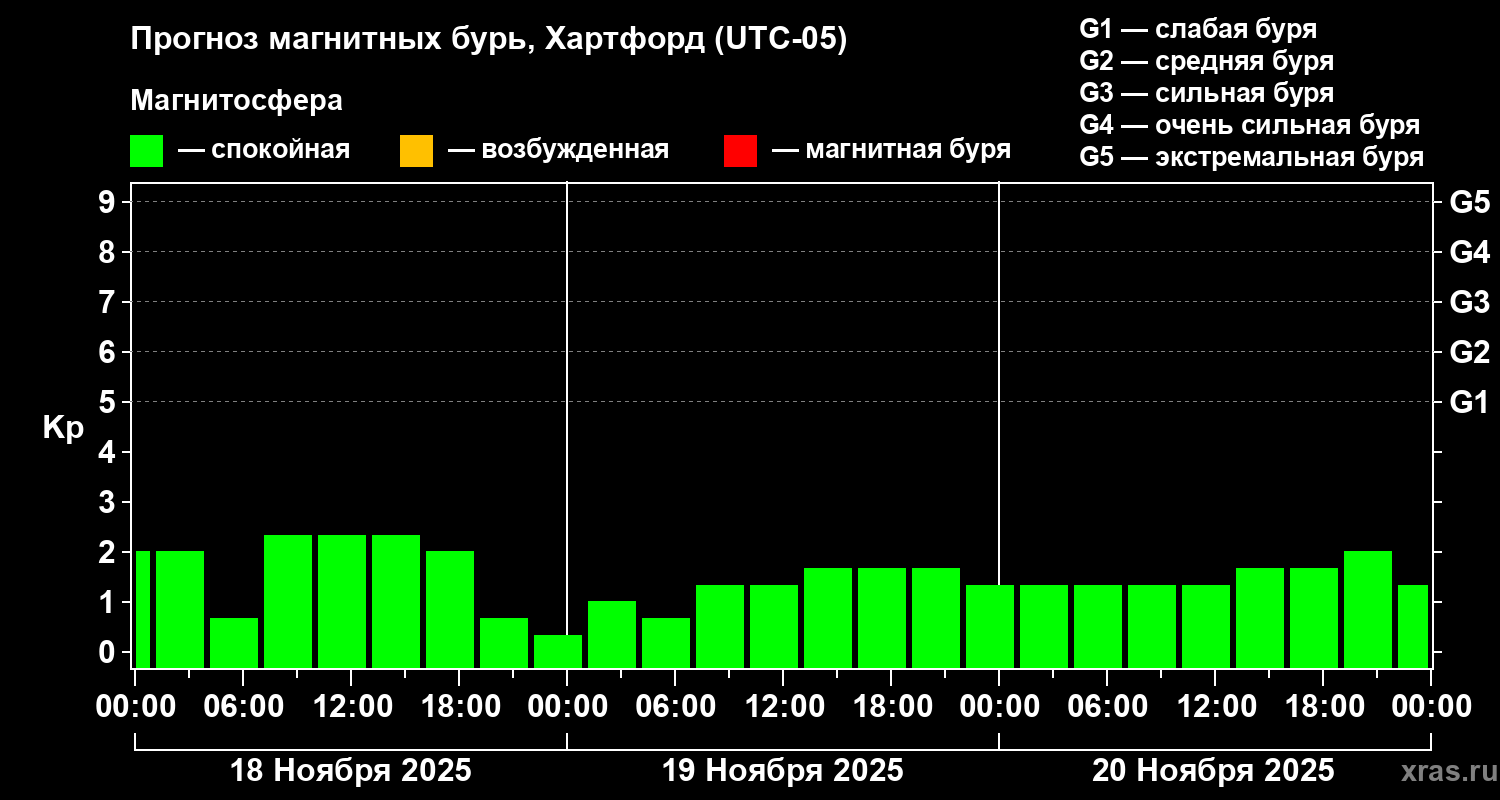 Прогноз магнитных бурь в Хартфорде на 18 ноября 2025 года