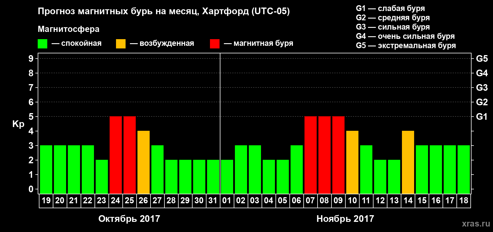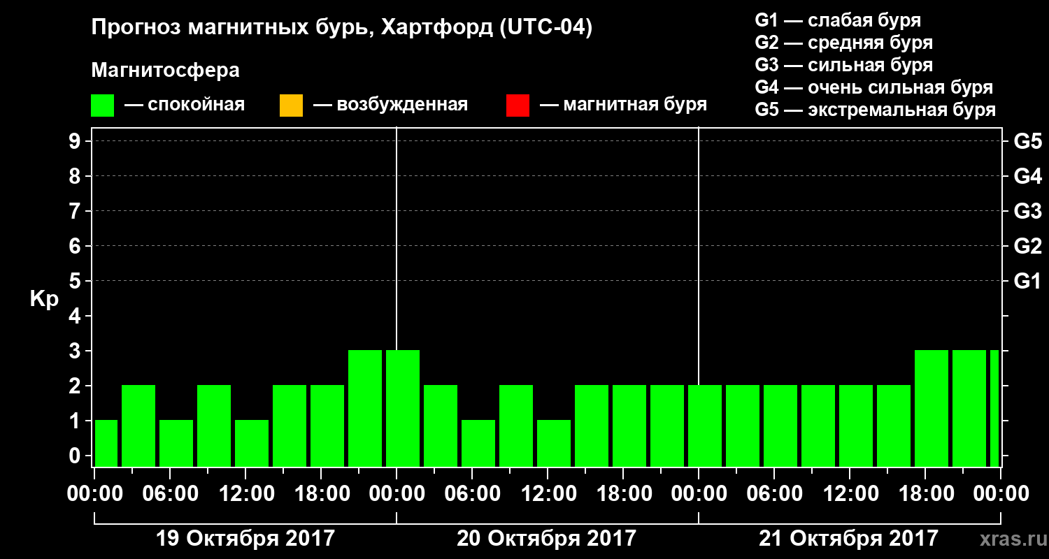 Прогноз магнитных бурь в Хартфорде — 19 октября 2017 года