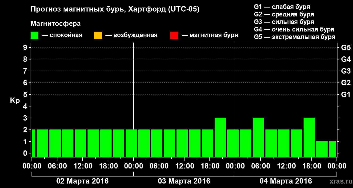 Прогноз магнитных бурь в Хартфорде на 2 марта 2016 года