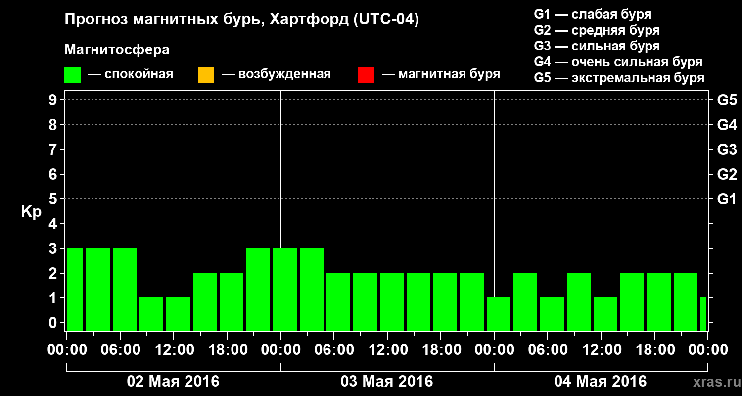 Прогноз магнитных бурь в Хартфорде на 2 мая 2016 года