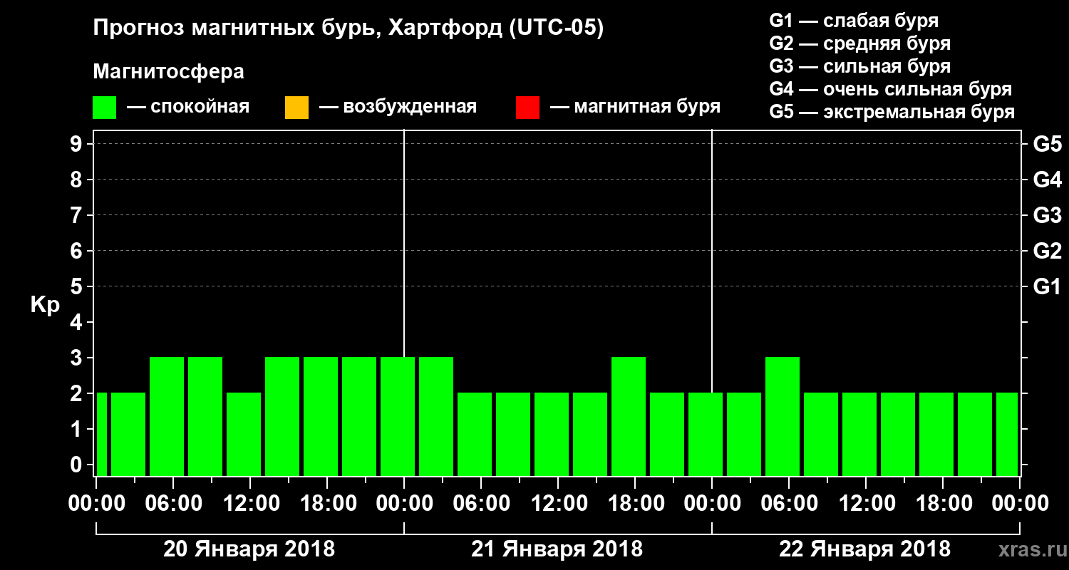 Прогноз магнитных бурь в Хартфорде на 20 января 2018 года