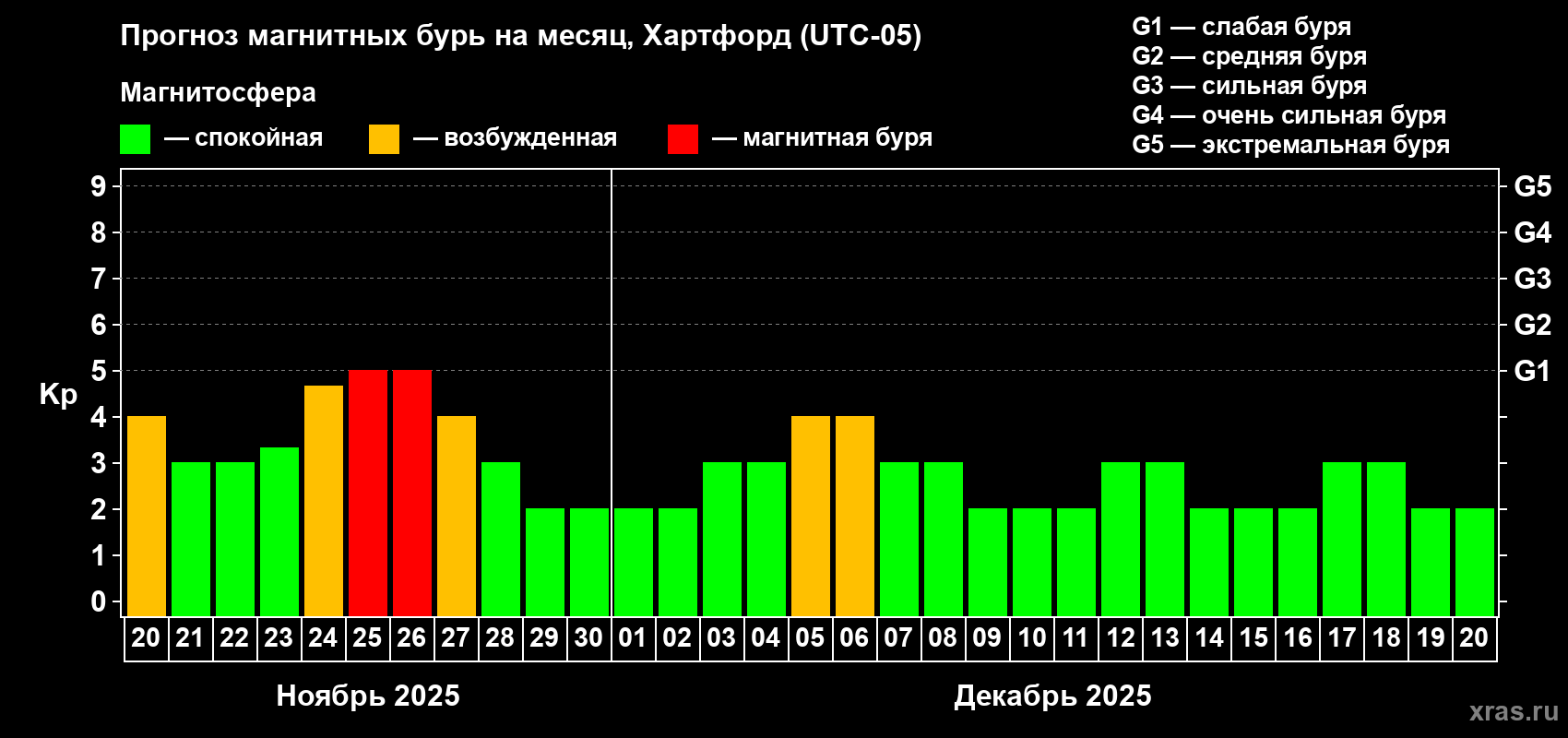 Прогноз магнитных бурь в Хартфорде — 20 ноября 2025 года