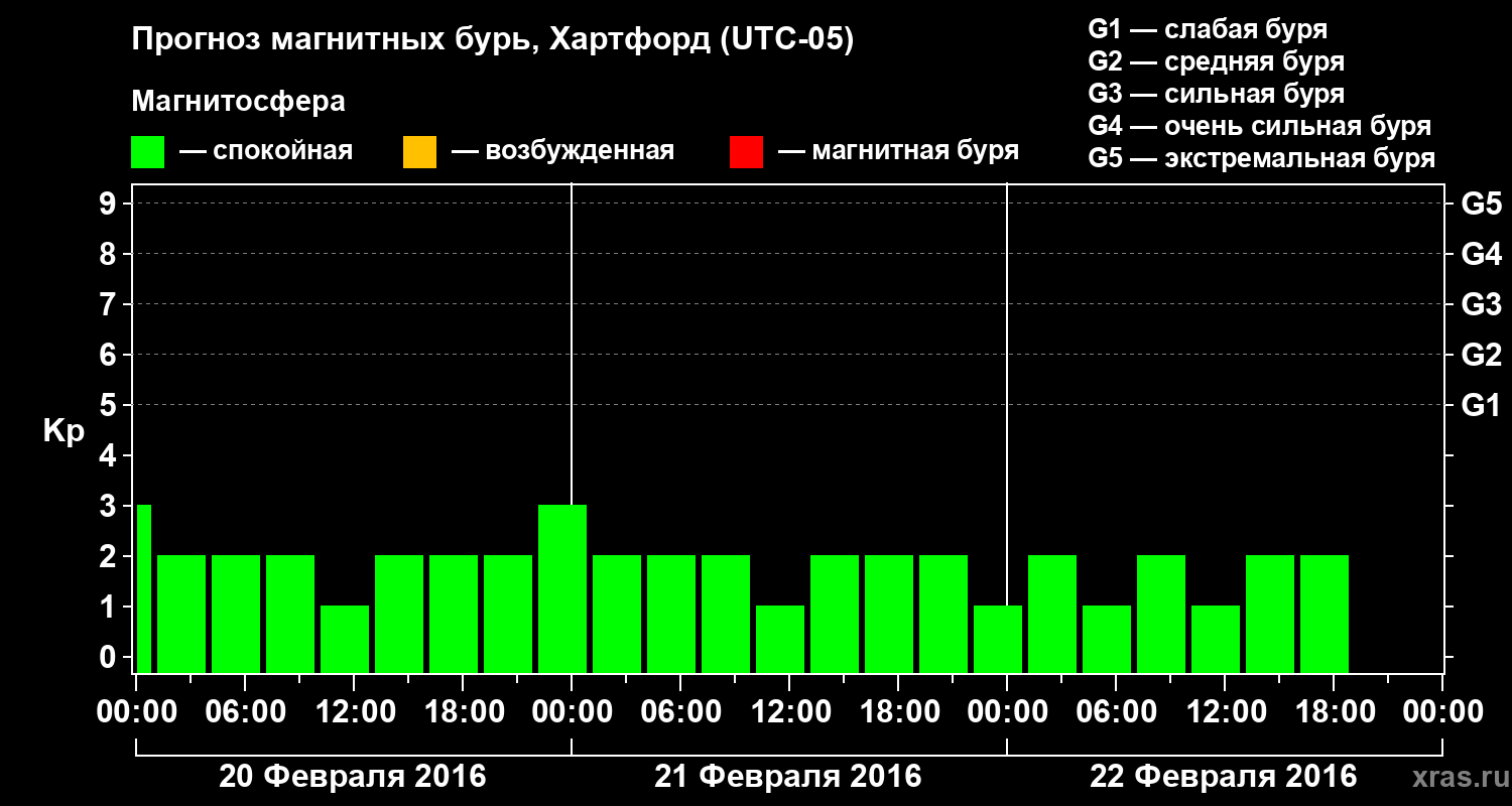 Прогноз магнитных бурь в Хартфорде на 20 февраля 2016 года