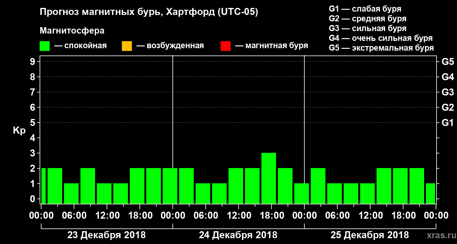 Прогноз магнитных бурь в Хартфорде на 23 декабря 2018 года