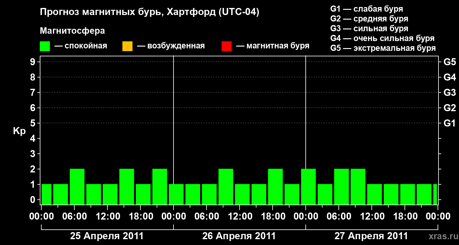 Прогноз магнитных бурь в Хартфорде на 25 апреля 2011 года
