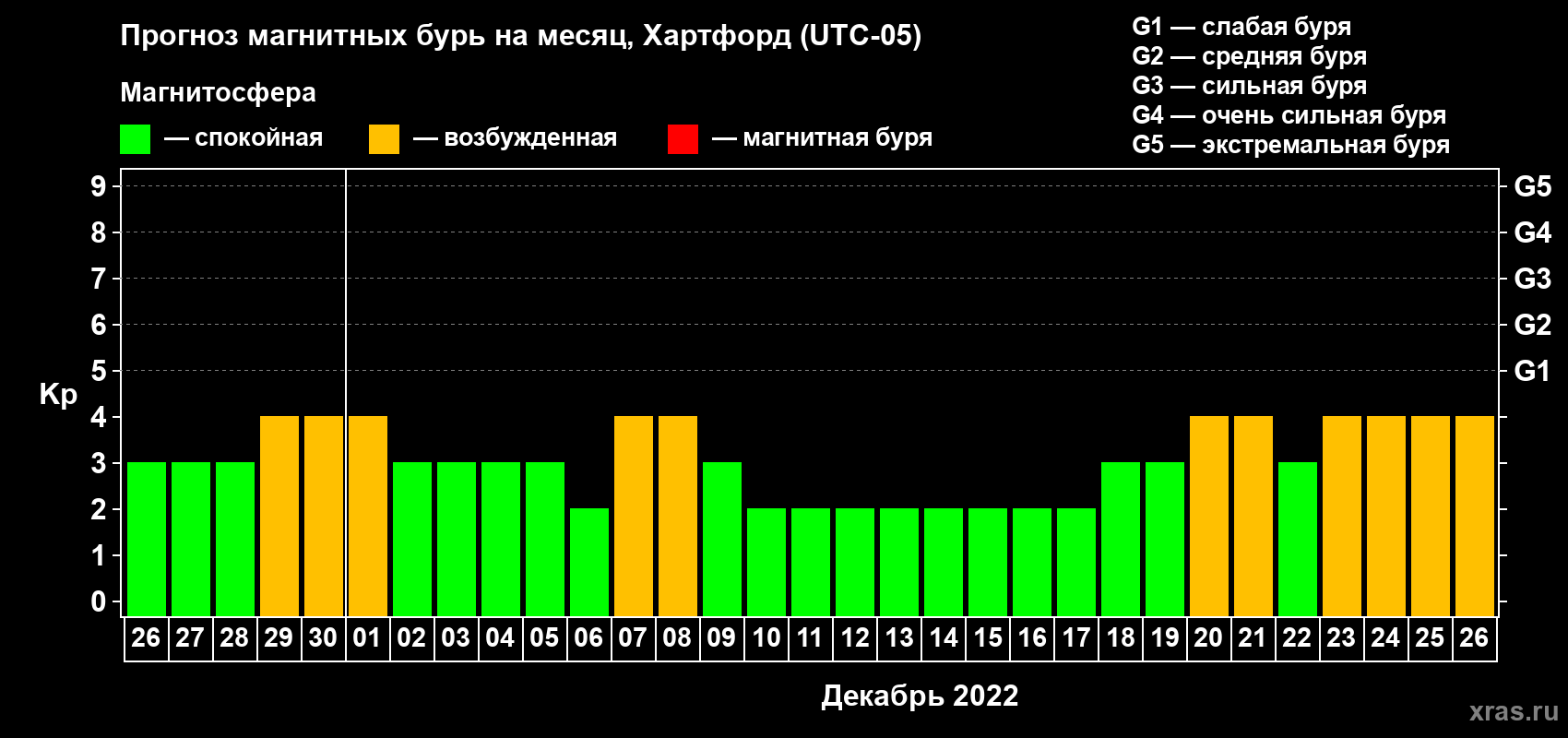 Прогноз магнитных бурь в Хартфорде — 26 ноября 2022 года