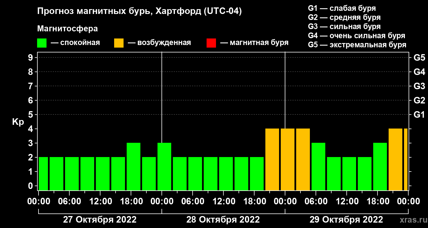 Прогноз магнитных бурь в Хартфорде на 27 октября 2022 года