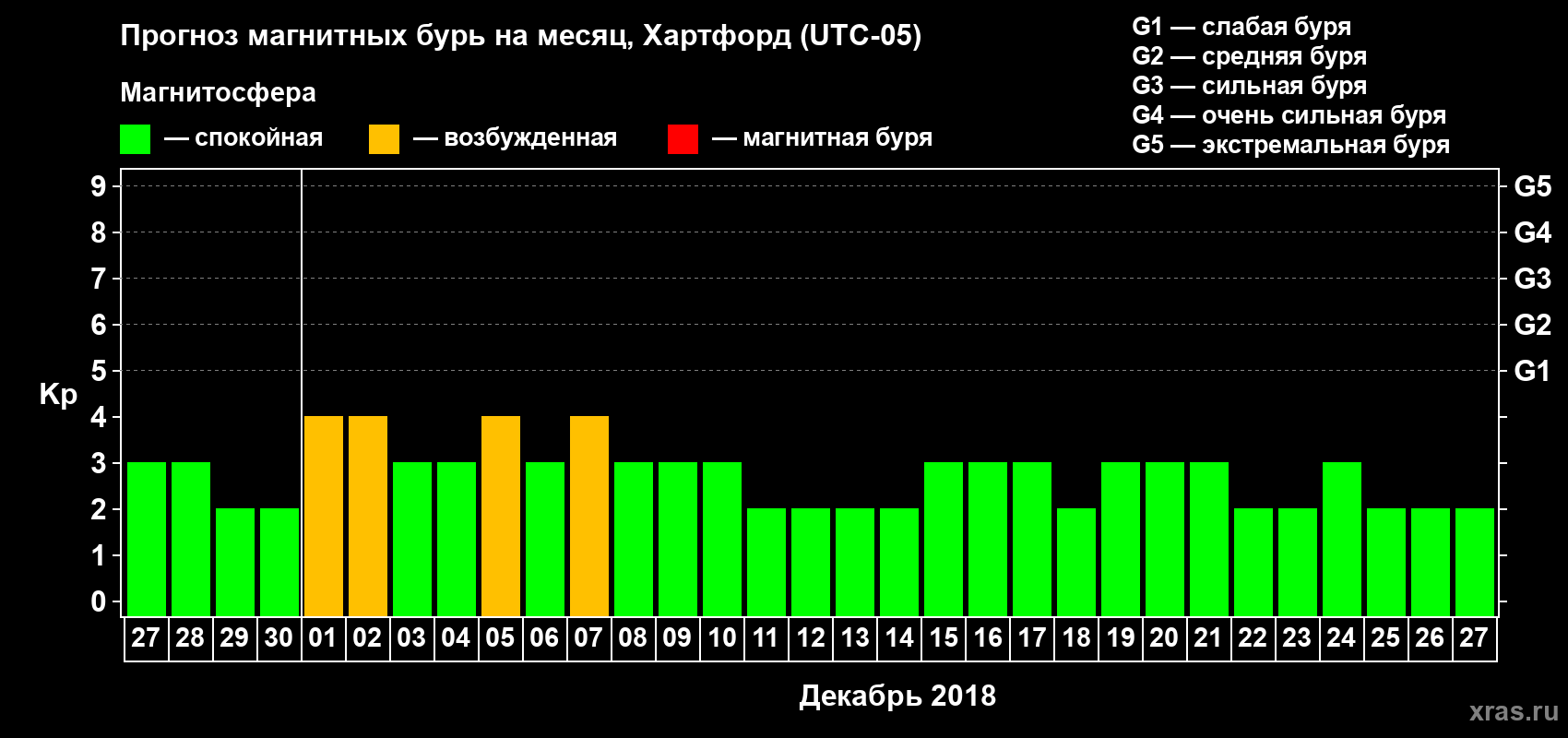 Прогноз магнитных бурь в Хартфорде — 27 ноября 2018 года