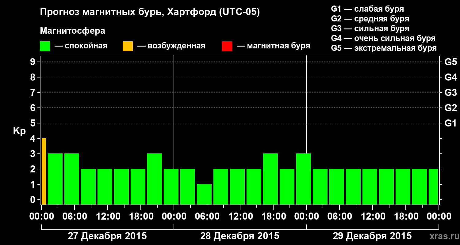Прогноз магнитных бурь в Хартфорде — 27 декабря 2015 года