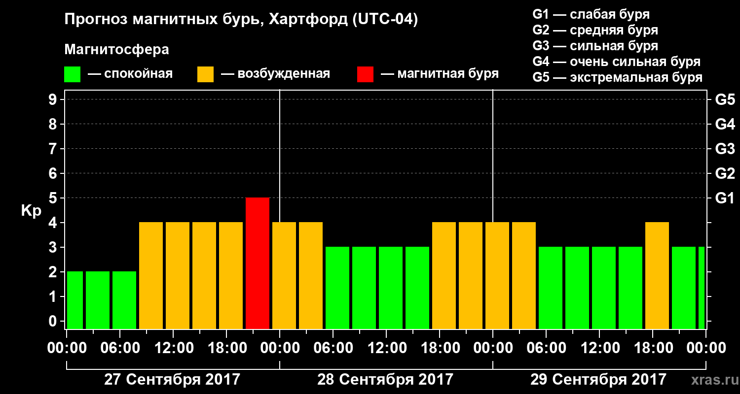 Прогноз магнитных бурь в Хартфорде на 27 сентября 2017 года