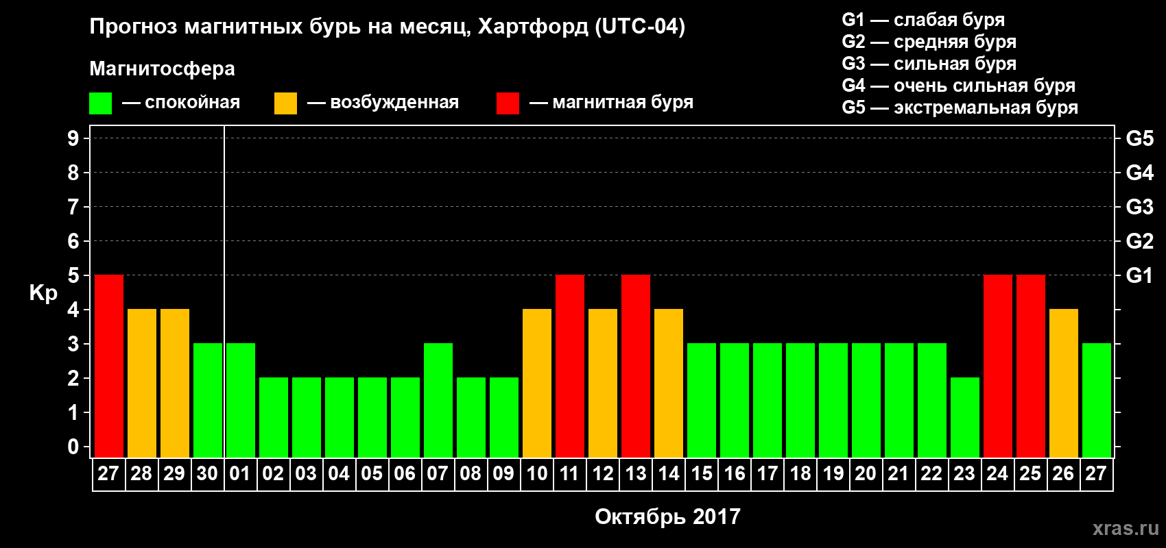 Прогноз магнитных бурь в Хартфорде — 27 сентября 2017 года