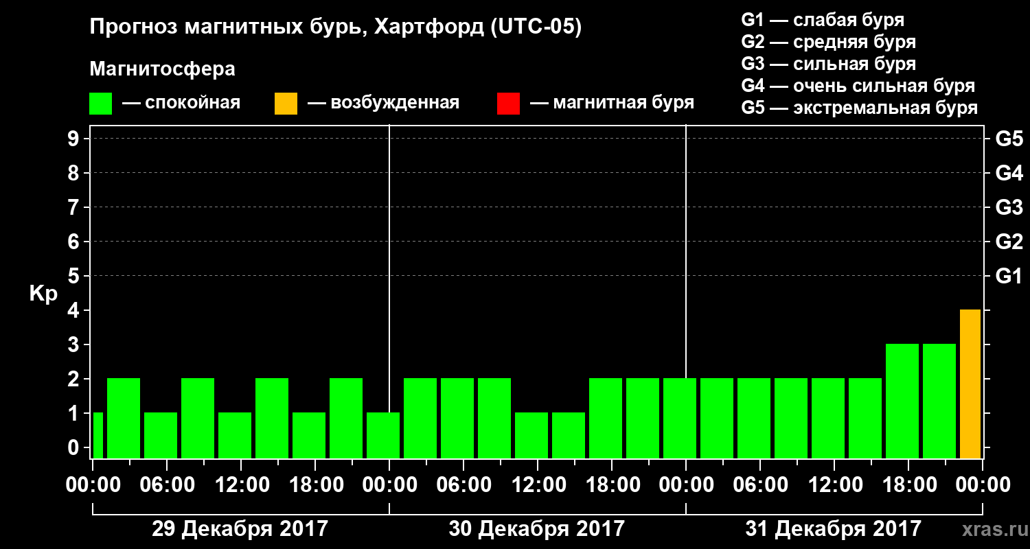 Прогноз магнитных бурь в Хартфорде — 29 декабря 2017 года