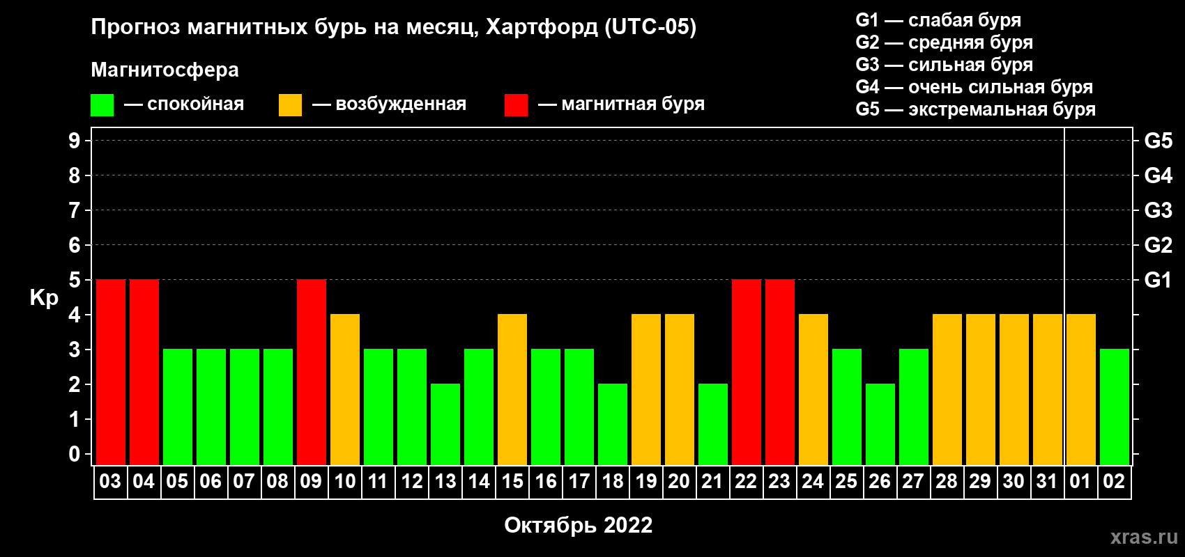 Прогноз магнитных бурь в Хартфорде на 3 октября 2022 года