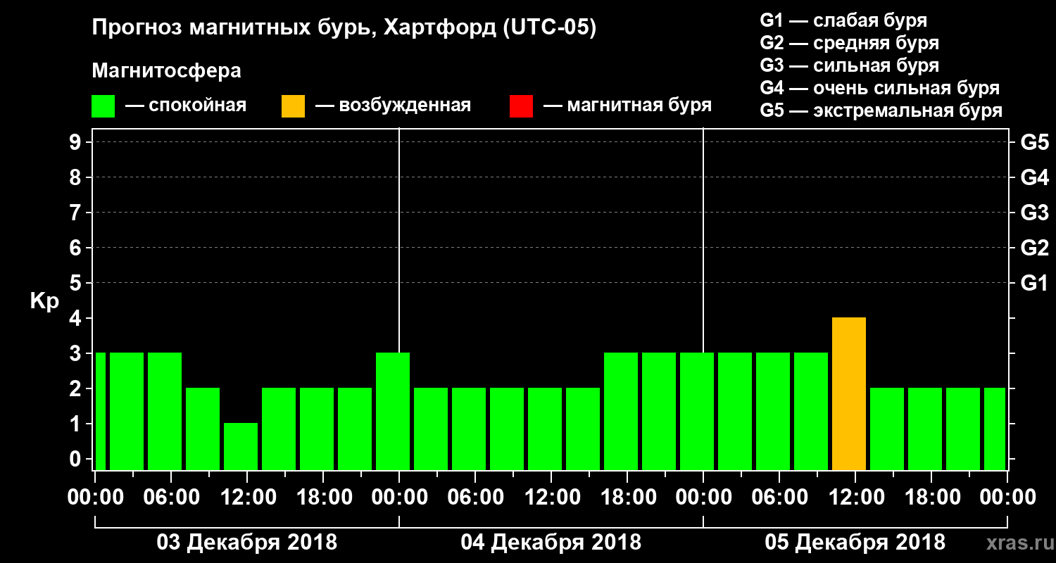 Прогноз магнитных бурь в Хартфорде — 3 декабря 2018 года