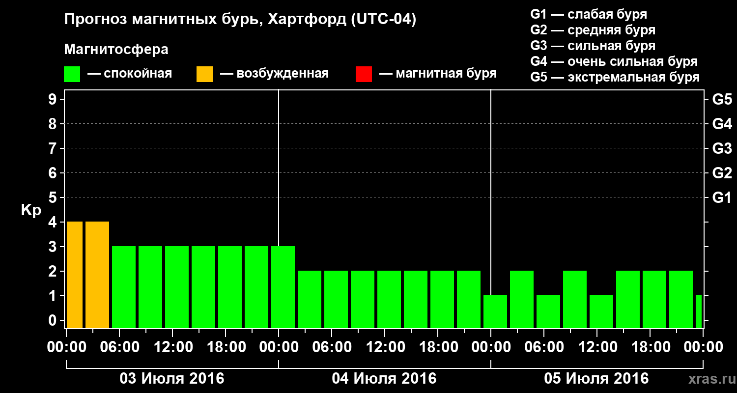 Прогноз магнитных бурь в Хартфорде — 3 июля 2016 года